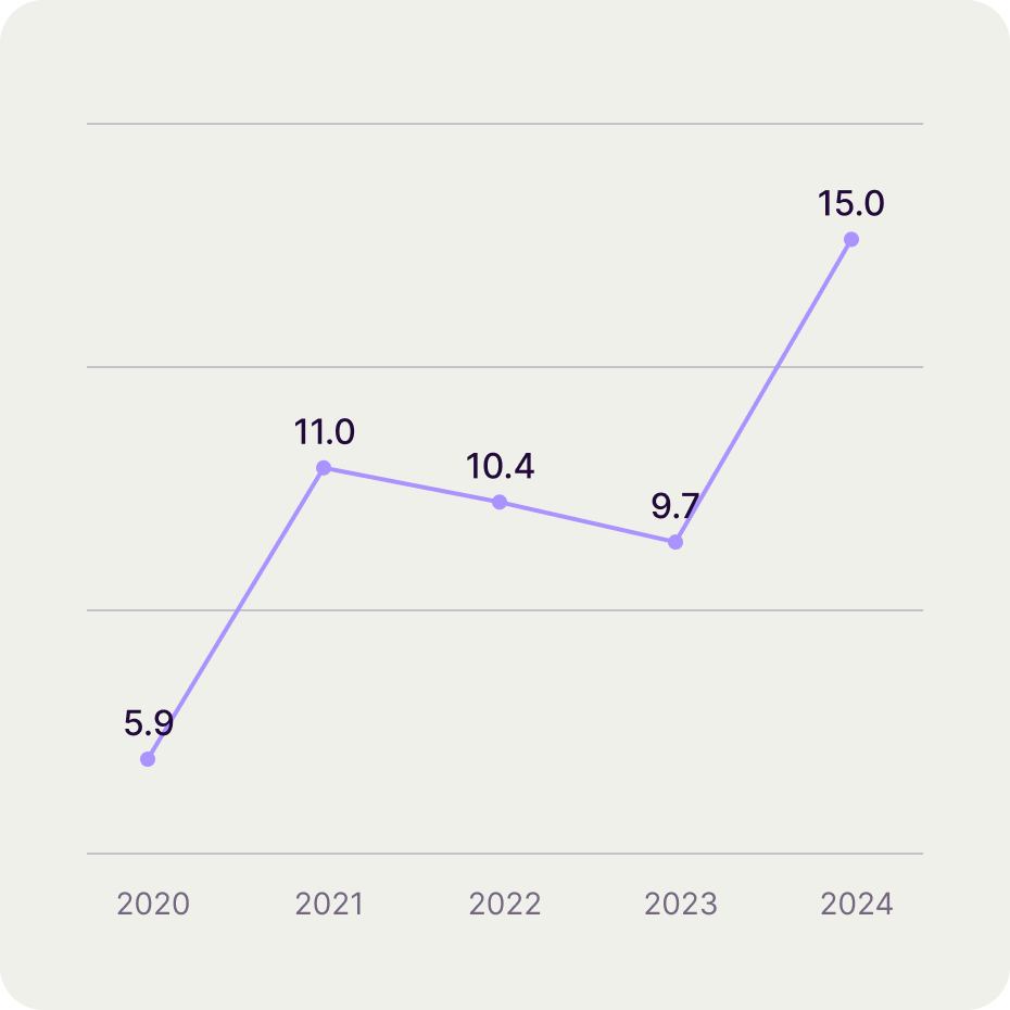 | Net profit | 5.9 | 11.0 | 10.4 | 9.7 | 15.0 |